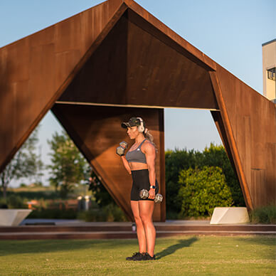 Performance spaces, picnics, playgrounds, community gardens and park lands are integral to the Frisco Station wellness plan.