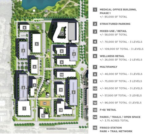 The 242-acre Frisco Station project is planned according to eight principles that support Wellness-Enhanced Development